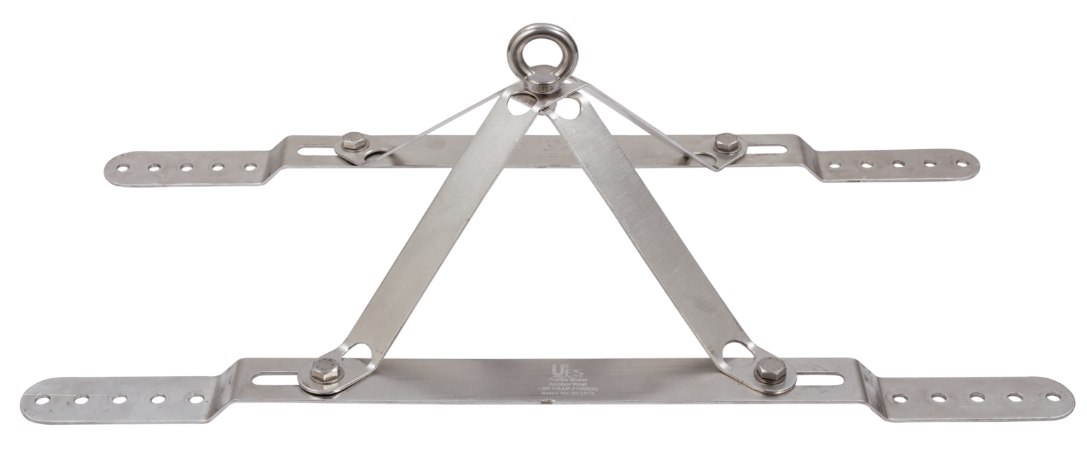 This extremity allows the horizontal lifeline to be fixed on galvolume or trapezoidal roof tops. It is installed at the end of the horizontal life lines making the post adjustable and allowing installation on roof sheets having different pitch or rib.