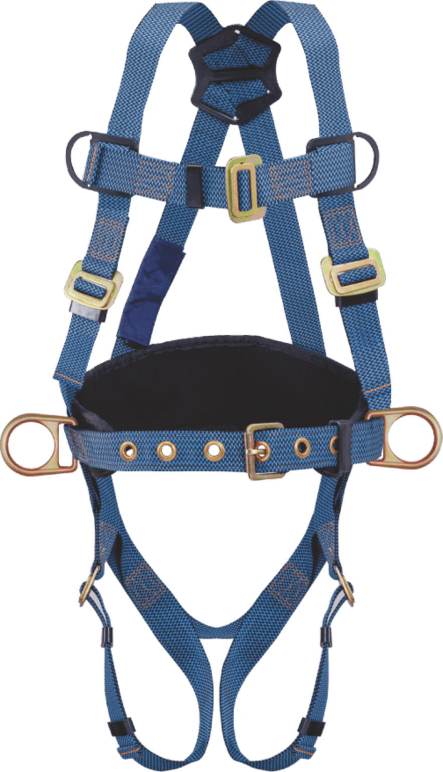 Fully Adjustable with comfort padded waist belt. Plastic adjuster on the shoulders for easy adjustment of the chest strap. Special design & high resistant polyethylene back plate for holding Big D-Ring even after the fall.