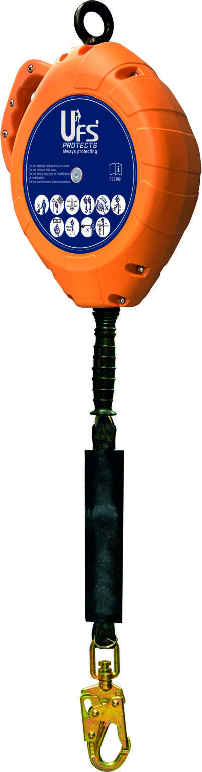 USP-16000(20)​E High impact Strength polymer Galvanized Steel Wire Rope of dia 5 mm. 15kN It Comes with various option of UFS hooks to choose from as per the requirements. Anchorage Eye with swivel action Conforms to : EN 360:2002  &  As per ANSI Z359.14-2021 8.7kg
