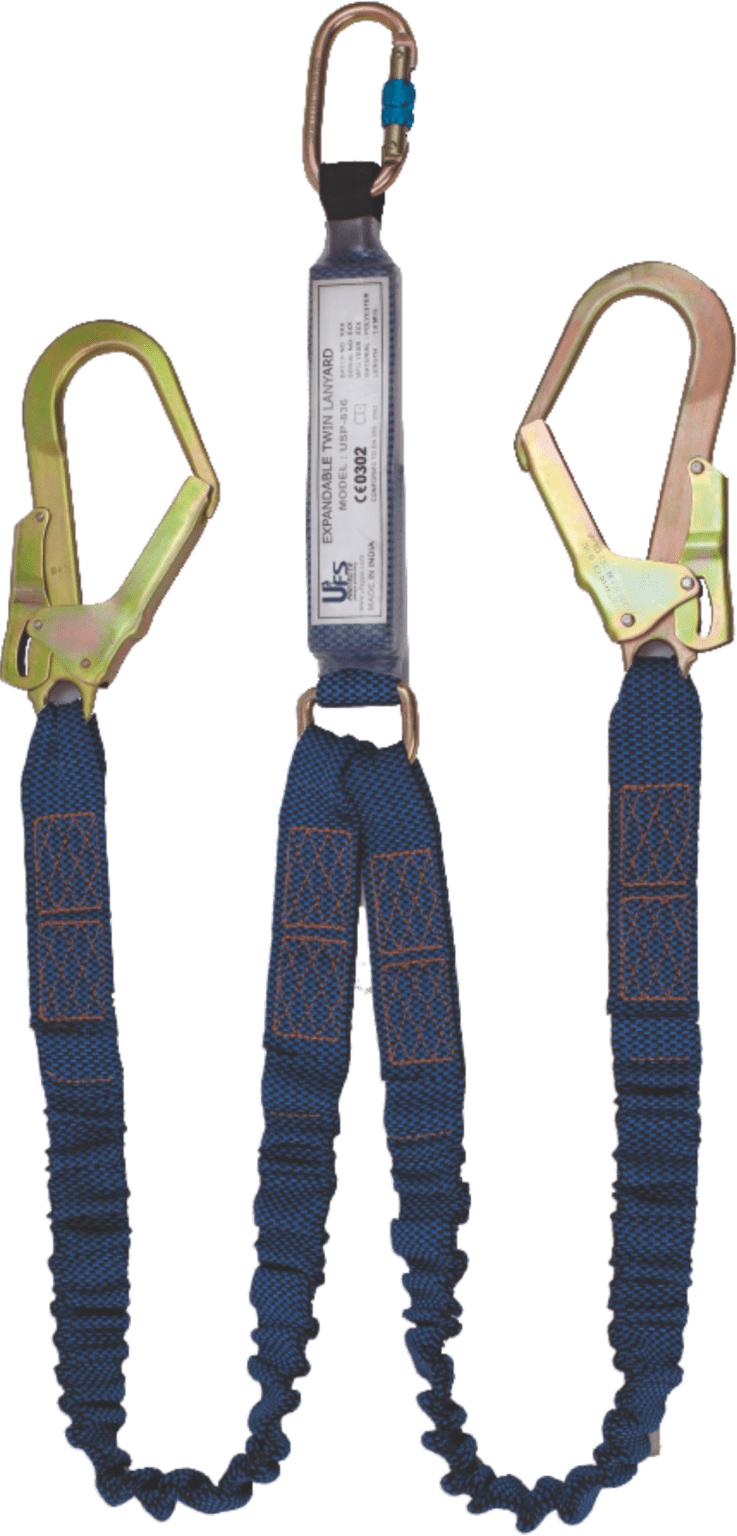 | USP-836 | Polyester Rope | 44mm | The Lanyard has one side with Steel Carabiner Hook USP H6 with Energy Absorber USP 888 and other two ends with Scaffold Hooks USP H10. | 1m, 1.5m, 1.8m & 2meters |